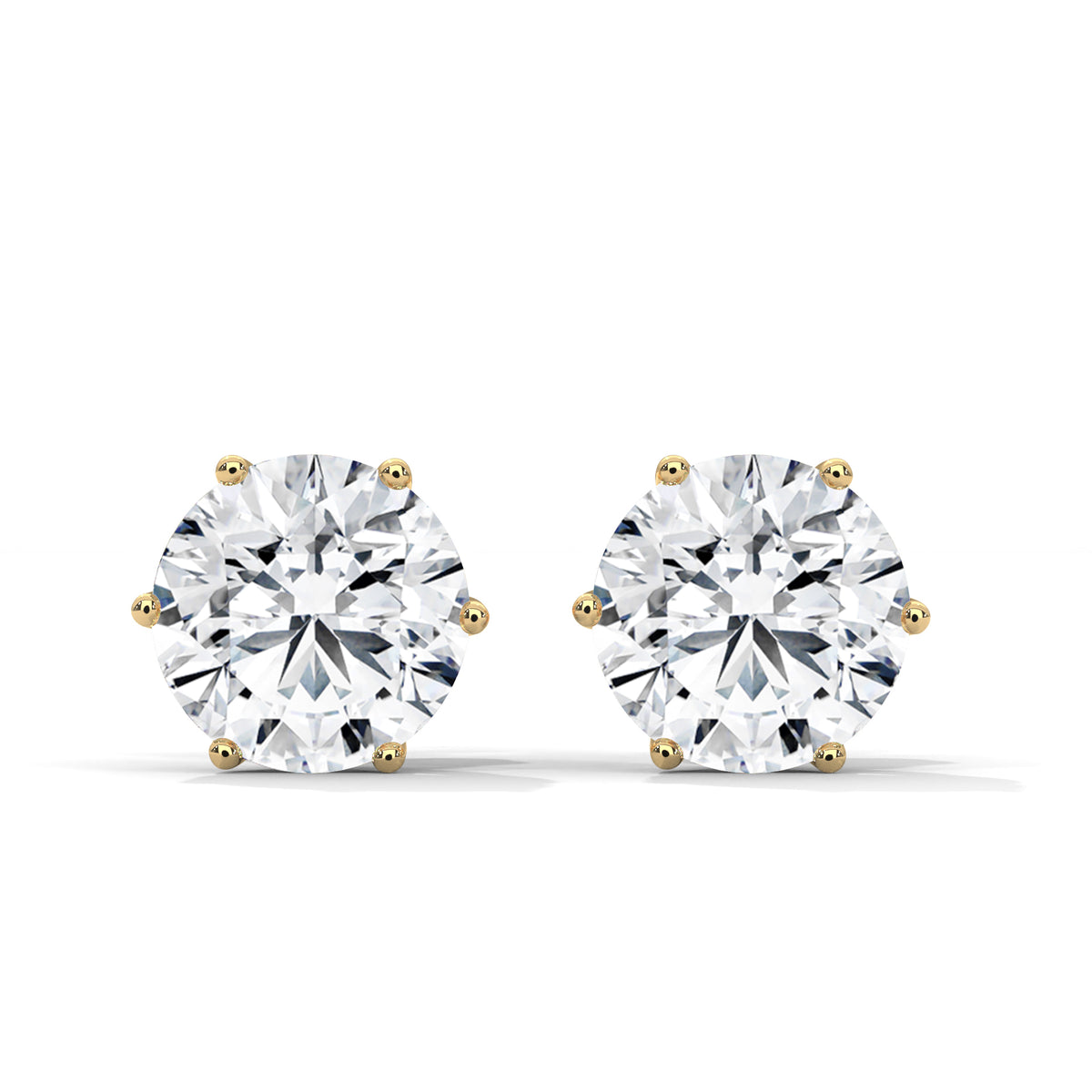 Six-Prong Round Diamond Stud Earrings | Solid 14kt & 18kt Gold | D/E Color | VS/VVS Clarity | 1ctw–5ctw